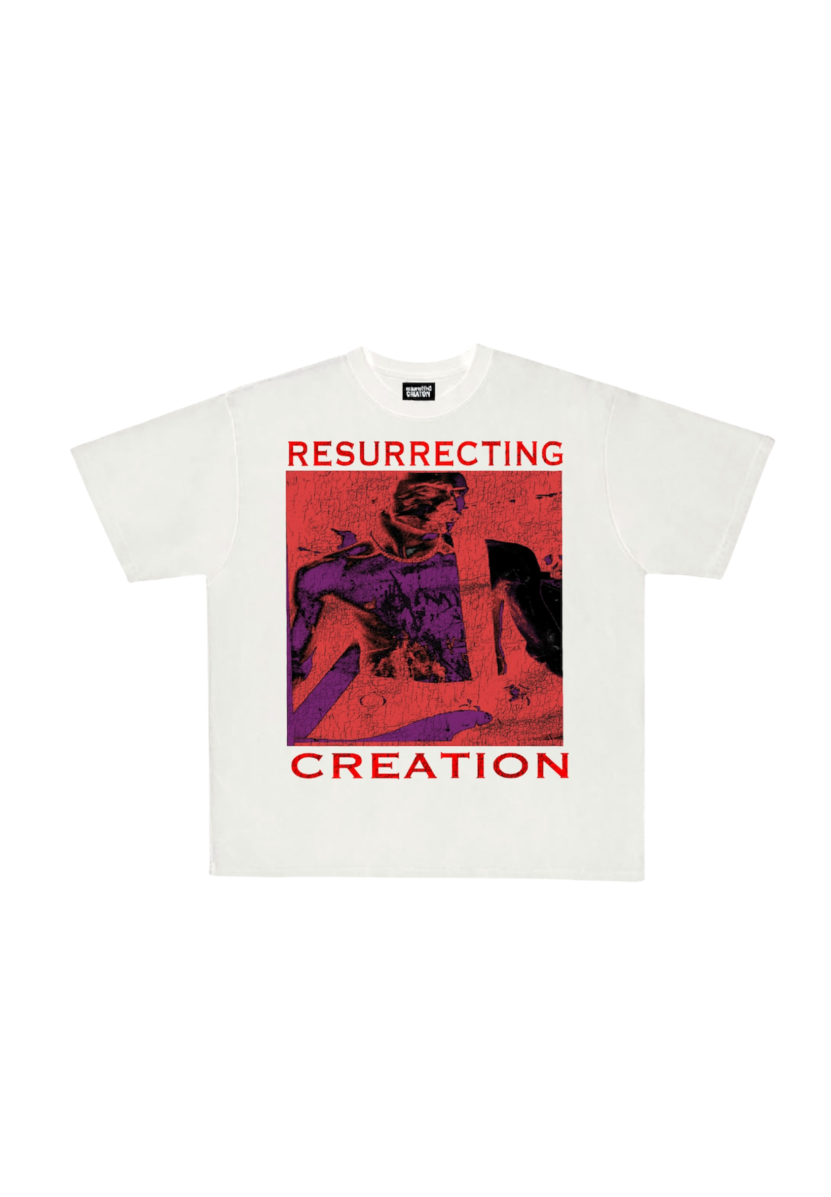 SHORT SLEEVE T SHIRT IN HEAVYWEIGHT COTTON JERSEY. LONGER OVERSIZED FIT. RIB KNIT NECKLINE. SINGLE STITCH HEM AT WAIST AND CUFFS. PRINTED ARTWORK AT FRONT.